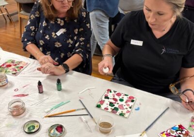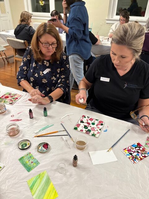 What makes C.A.F.E. especially fun is the element of surprise. Participants never know what the project or medium will be until they arrive. One month you might be experimenting with alcohol inks, and the next you might be creating a collage, trying hand embroidery, or designing artist trading cards.