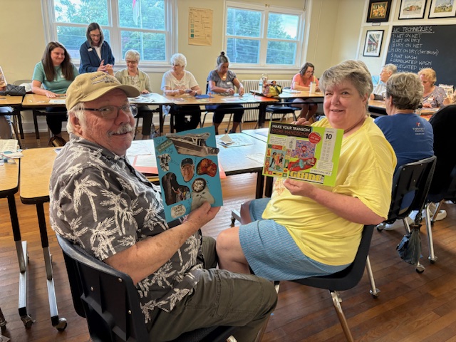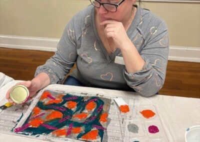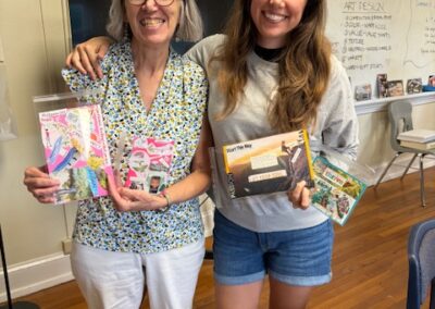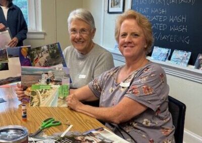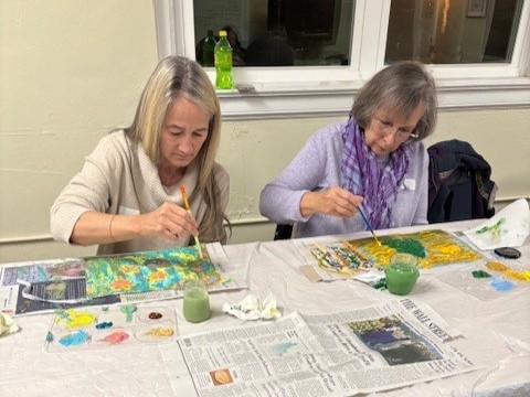 The program was created and is taught by Darlene Berry and Esther Wakefield, longtime friends and creative partners who share a deep love for process-focused art. Their creative journey began decades ago in the kitchen as “Wakeberry Preserves.” From there, their artistic experiments expanded into the driveway with “Berryfield” papermaking. Over the years, their collaboration has grown into a rich exploration of creativity and wellness through the arts. Today, Darlene and Esther are active members of a vibrant creative community and bring experience working with a wide range of mediums, including: