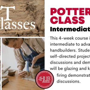 Join our one-month Open Studio Pottery Pass at the HUB Station Arts Center and unlock your creative potential! Located in Hudson, our pottery studio offers artists of all levels the opportunity to explore and create in a fully equipped, inspiring space. With flexible access throughout the month, you can work at your own pace, experiment […]