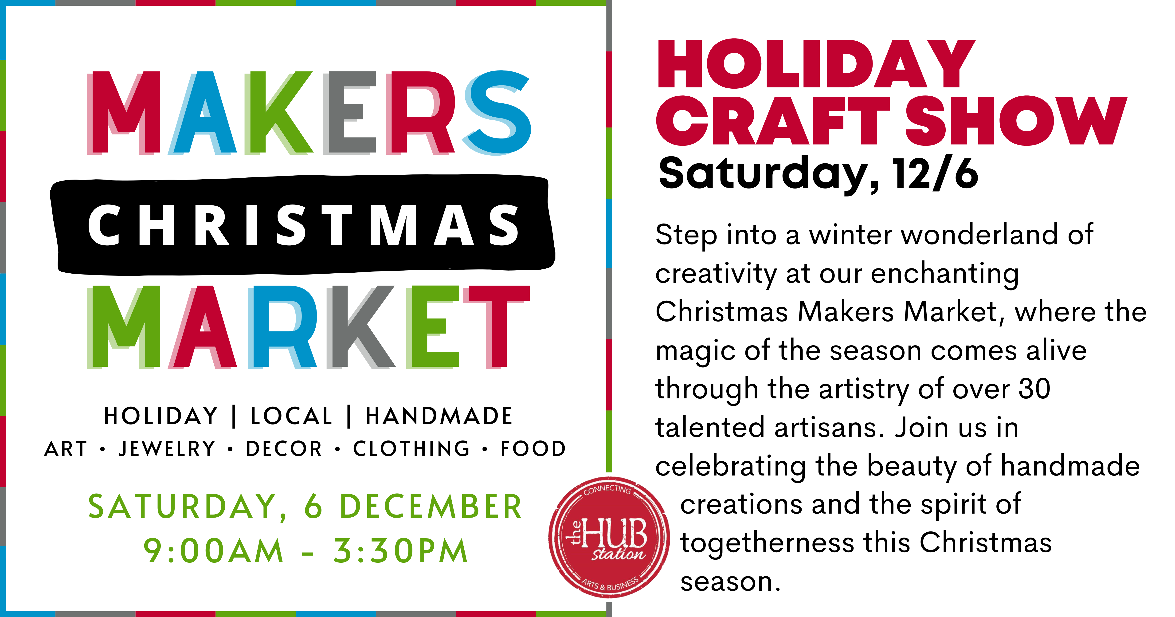 Join us at the HUB Stations Arts Center for our 10th annual Christmas Makers Market, where holiday cheer meets handmade creativity. Step into a wonderland filled with local artisans and crafters offering one-of-a-kind treasures—everything from whimsical ornaments and cozy home decor to mouthwatering treats and heartfelt gifts. Each vendor has crafted at least 75% of their products by hand, making this a truly unique shopping experience.