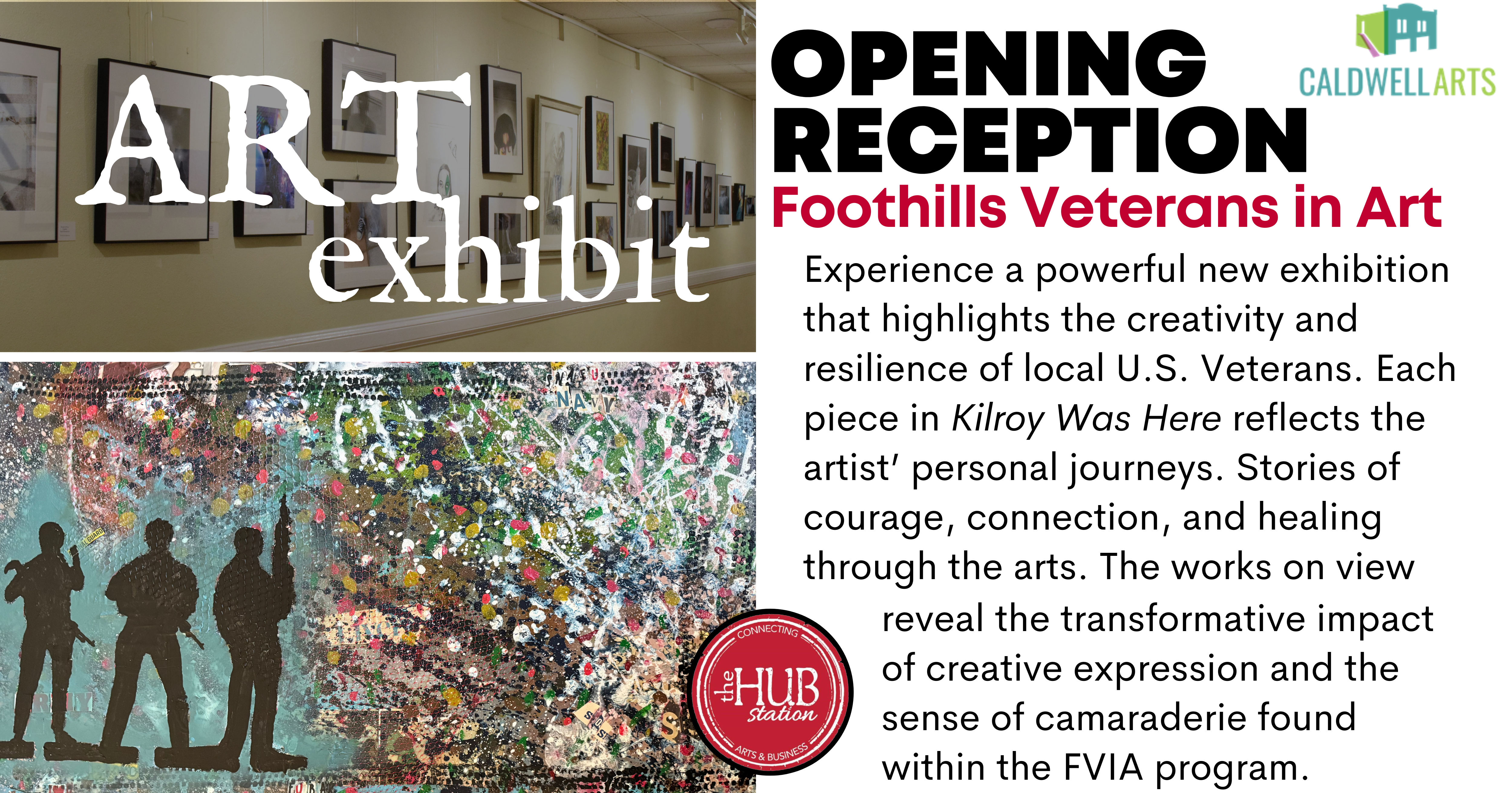 The Caldwell Arts Council proudly presents Kilroy Was Here, a powerful new exhibition featuring works by members of Foothills Veterans in Art (FVIA). This inspiring collection shines a light on the creativity, courage, and personal stories of local U.S. Veterans who have discovered healing and connection through art.